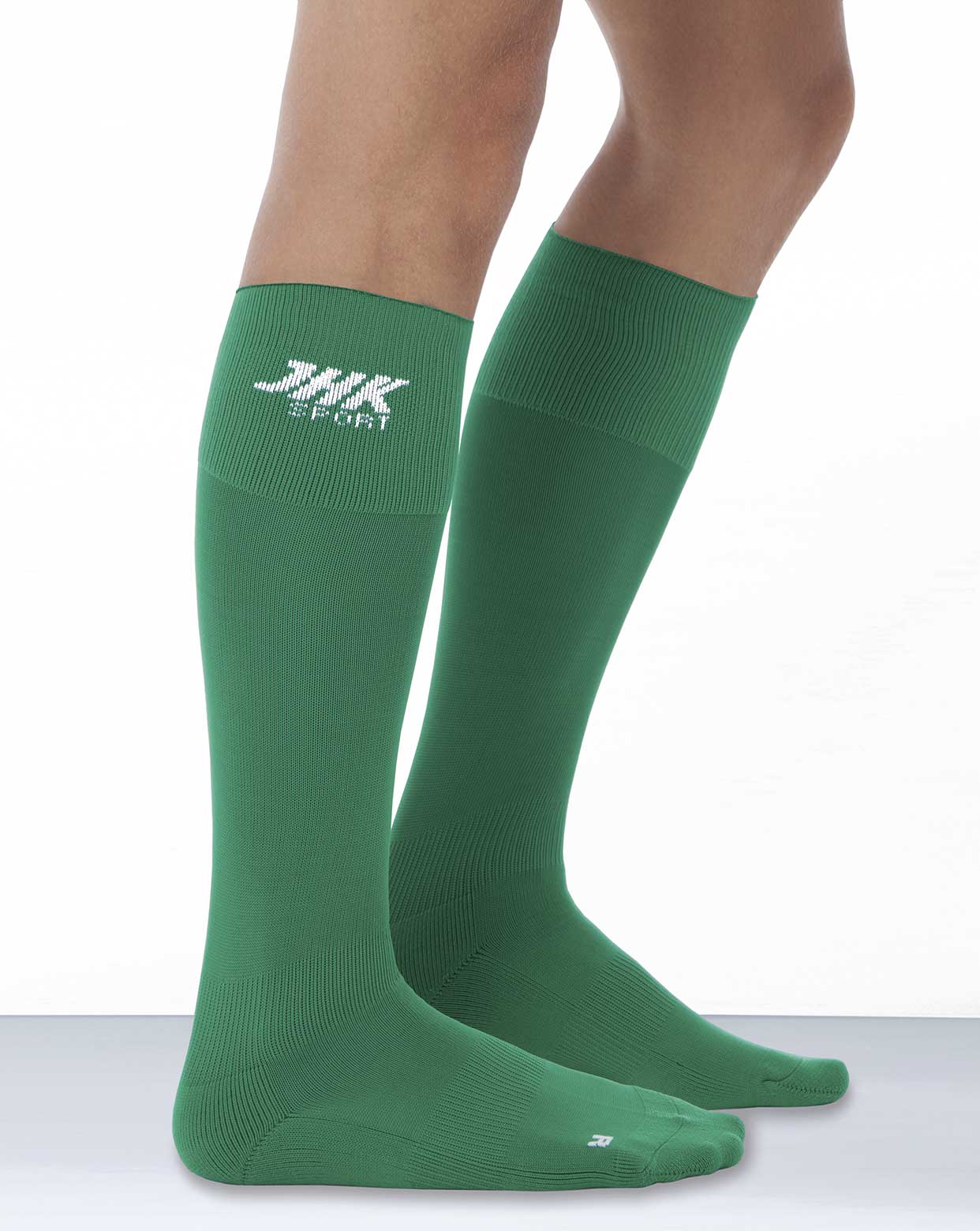 Medias de fútbol para adulto y niño. Disponible en 7 colores y desde la talla del pie 34 a la 42. Logo de JHK en un lateral.