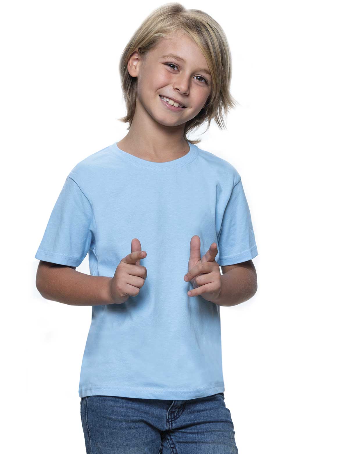 Camiseta básica para niño de manga corta, 100% algodón. Ideal para personalizar con serigrafía, vinilo, transfer e impresión digital. Etiqueta removible. Camiseta recomendada para climas más fríos por su gramaje de 190 gr. 13 colores y desde la talla 3/4 hasta la 12/14 años. Disponible también para hombre y mujer.