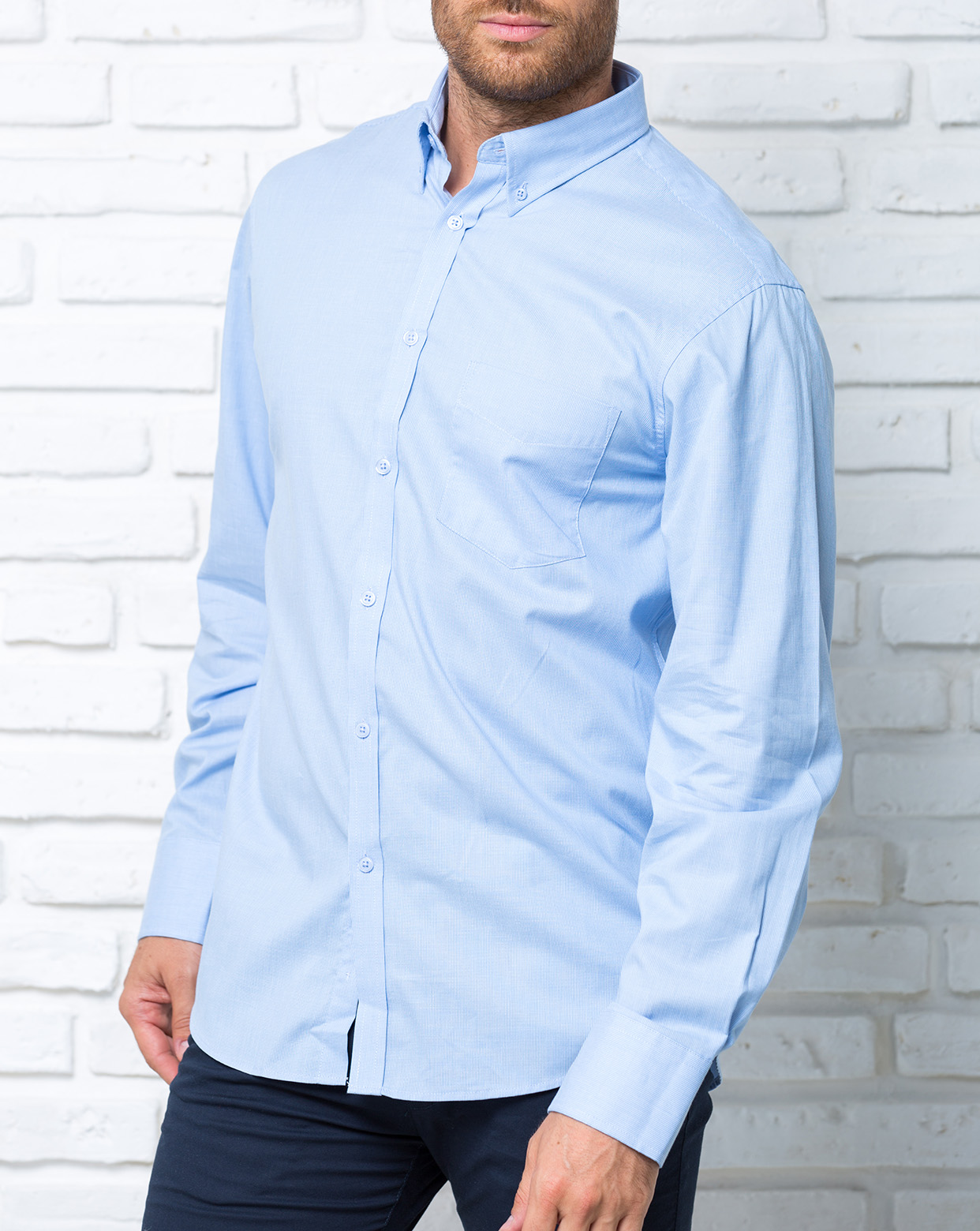 Camisa mil rayas de manga larga. Bolsillo delantero.